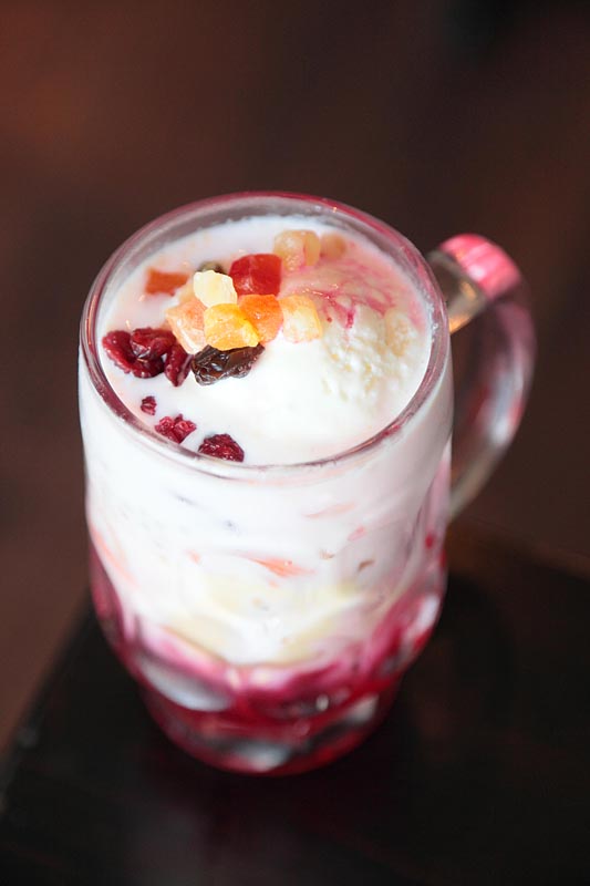 コスウェ・トゥ 800円 五目麺である。中華の五目ソバと違うのは、汁がないこと、味がないこと、である。味がない、と書くと語弊がありそうだが、ほんとに、ない。ソバにからまってるのは油である。ミャンマーの人は油が大好きだが、その油味が若干する。濃くはない。それと、その油に寄りそう感じで野菜の味がする。これらの味は食べていくうちに、じわっ、と口内にひろがっていくもので、最初のうちは、やはり、味がない、と感じてしまう。ムニュ(←麺)、ザクザク(←野菜)、という食感はあるが味がない。不思議な食べ物である。好奇心の強い方にはおススメの一品である。