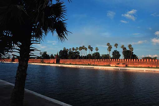 戦時中、英空軍の爆撃により破壊されていまったマンダレー王宮。王宮の回りには堀が巡らされている。